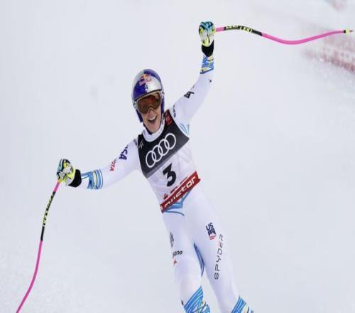 沃恩在2019年國際雪聯高山滑雪世錦賽衝過終點後慶祝。新華社/美聯