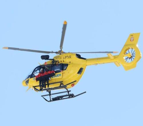 2月8日,一架直升機接走受傷的美國隊選手沃恩。新華社記者 張晨霖 攝