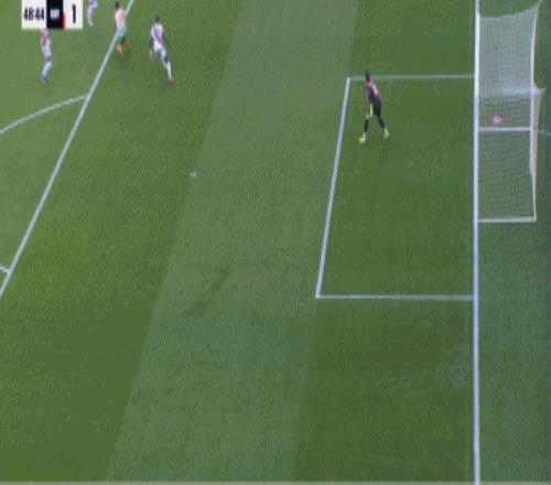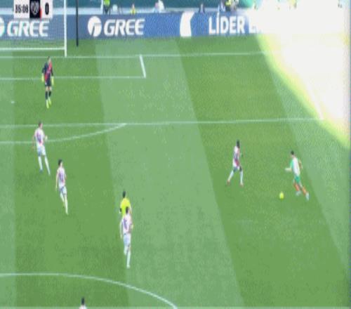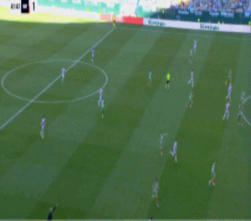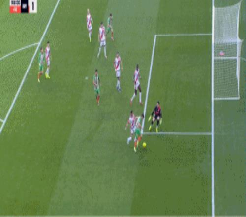 第42分鍾,扳平比分,帕拉鬆後點搶點破門,巴列卡諾1-1貝蒂斯