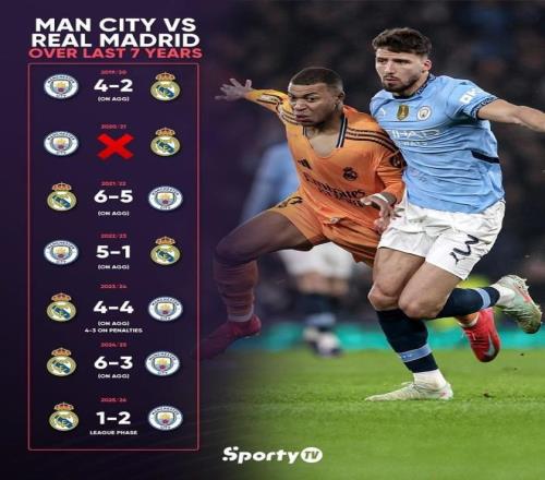 2023-24賽季,兩隊則在八強戰裏交鋒,皇馬首回合主場3比3戰平。次回合兩隊再度戰平,皇馬最終依靠點球決戰淘汰曼城。在2024-25賽季,兩隊則在淘汰賽附加賽裏交鋒,皇馬主客雙殺曼城之後晉級16強。
